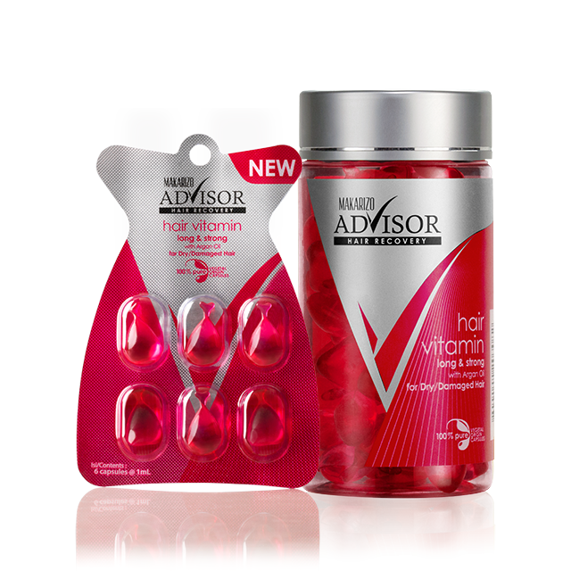 Hair Vitamin Capsules Long & Strong sebuah inovasi terbaru dari Makarizo Advisor Hair Pemulihan. Vitamin rambut pertama dengan 100% murni kapsul yang mengandung Vitamin A, C, E, Pro Vitamin B5 dan Silk Protein untuk membentengi, merevitalisasi, dan menyuburkan rambut. Kapsul yang panjang juga mengandung Argan Oil untuk merawat rambut rusak yang disebabkan oleh obat kimia, dan alat-alat styling panas. Penggunaan rutin membuat rambut panjang dan kuat, serta mengkilap pada saat menggunakannya di hari pertama.