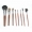Kuas-kuas yang menjadi fitur dari kuas set ini adalah powder/ blush brush, angled shading brush, foundation brush, sponge eyeshadow brush, fan brush, brow/lash brush, detailed eyeliner brush, cream blending brush, lip brush, lash/brow brush, tappered blending brush, dan eyeshadow brush.