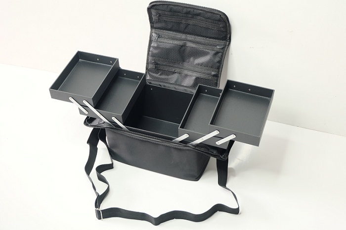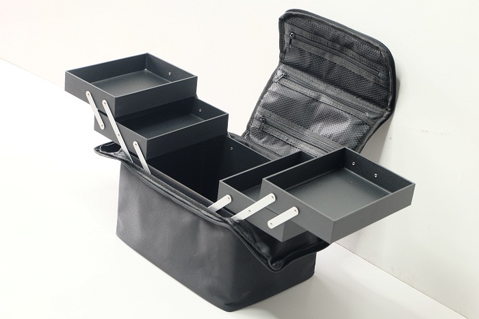 Make-up bag dengan kapasitas yang sedang mampu menyimpan peralatan make-up, dilengkapi dengan fitur trays, kantong jaring dan space yang cukup untuk menata peralatan make-up. Berbahan dasar kain kanvas yang tidak mudah rusak, maupun kotor. Lebih ringan untuk Anda gunakan kemana saja.