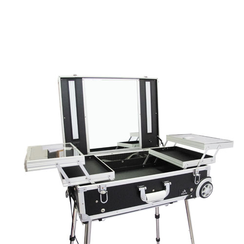 - Terdapat kaca, lampu neon sehingga terdapat ruangan lebih, colokan listrik yang dapat digunakan untuk alat styling, seperti hairdryer, flat iron, dan curling tongs,membuat beauty case ini dapat memberikan pengalaman make up yang tak terlupakan. Cocok untuk professional make up artist.