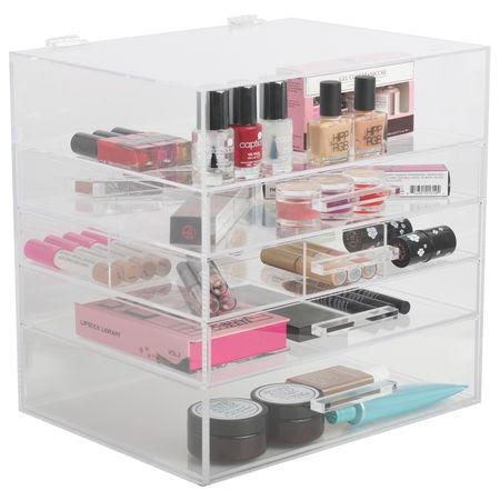 Terbuat dari Bahan crystal clear acrylic yang dapat menyimpan alat make up secara rapi dan aman tanpa takut rusak.