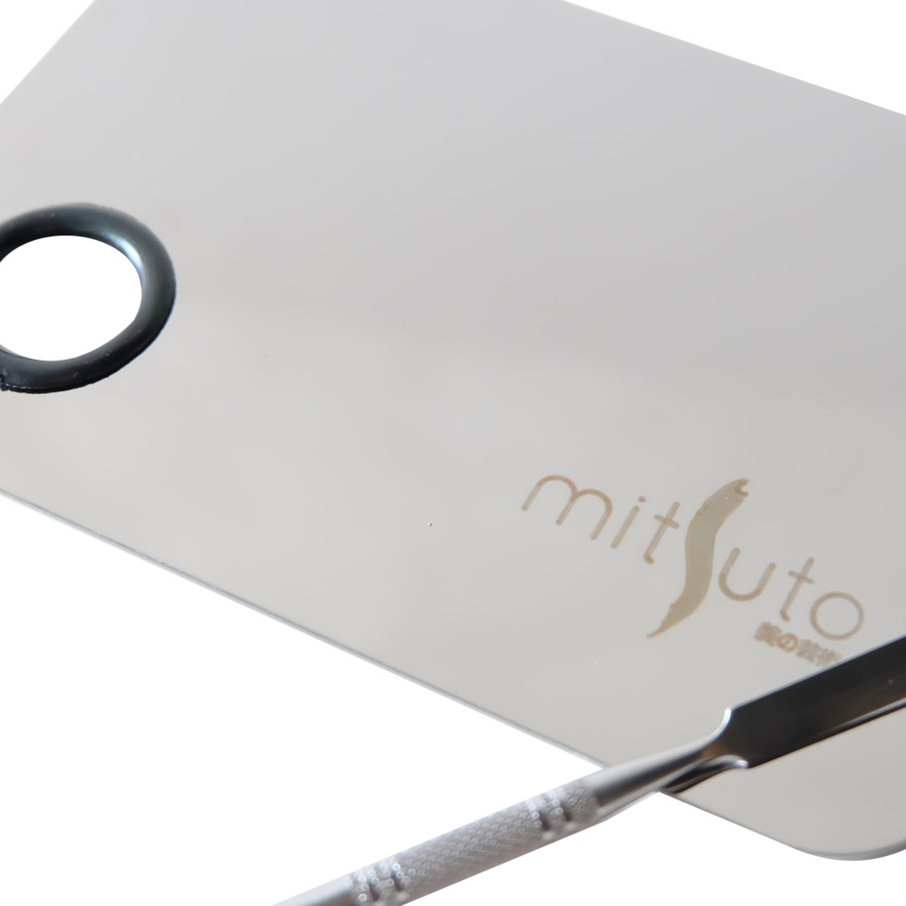 Sebuah aluminium palet set yang digunakan untuk mencampur dan memperoleh warna foundation yang diinginkan.